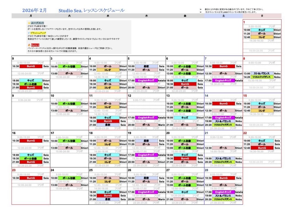 レッスンスケジュール
